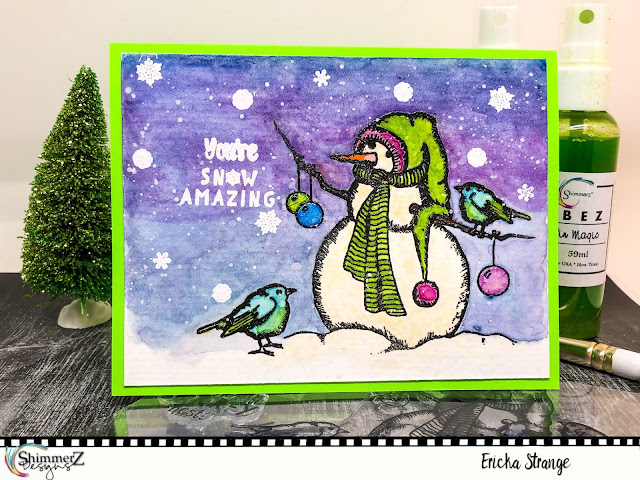 I used a little Gold Glimmer Blingz on the snowman to give him a little shine and added some Vibez Snow Storm to blend in a whiter look.