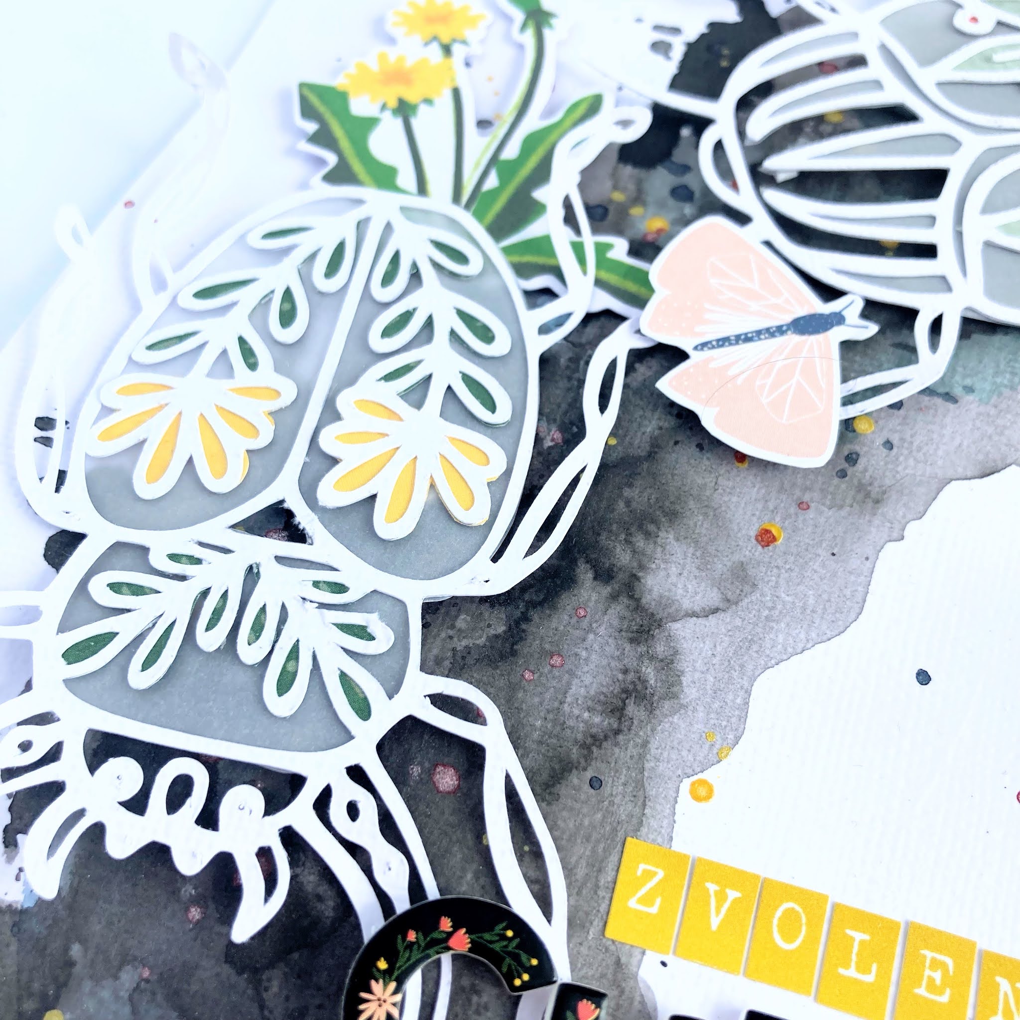 After that I let it dry and in mean time I backed my cutted out beetles. It was kind of pain because leaves and flowers on beetles was small, but at the end I was happy that I did it because I like how it looks on my black background.